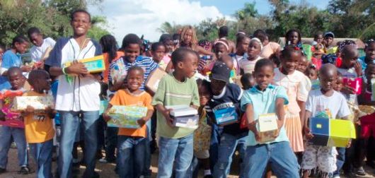 Cada Diciembre hacemos un evento donde compartimos con cientos de niños. Este año le llevaremos regalos a 200 niños. Este usualmente consiste de juguetes, algunos útiles escolares, artículos personales (como pasta dental, y cepillos dentales), zapatos, t-shirts, dulces etc. Queremos pedirle que si ustedes tienen juguetes, ropa y cualquier otra cosa que puedan donar que por favor los traigan a nuestro toy-drive.