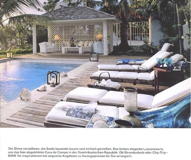 “BMW Inspirations” is an exclusive magazine distributed in Germany to more than 500,000 BMW owners – and with Casa de Campo making the front cover it looks likely that we will soon be visited by a large number of BMW owning Germans! As well as the stunning photo, a classic of the Teeth of the Dog golf course on the front cover, inside the magazine the extensive spread on the Casa de Campo resort, showcases some prime Casa de Campo real estate, as well as dining at the Beach Club by Le Cirque on Minitas Beach! After seeing this spread what BMW owning German will be able to resist coming to visit!?