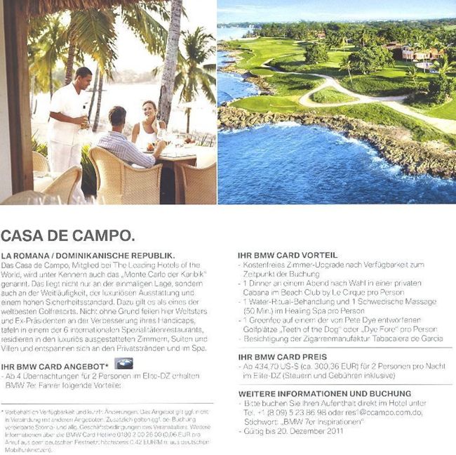 Special Offers for German BMW-owners! This page lists some great special offers available at Casa de Campo with the BMW card!