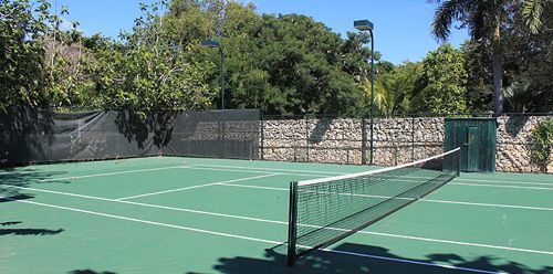 Se descubre entre los jardines tropicales de Punta Águila #12, una singular cancha de tenis privada en Casa Alegre.